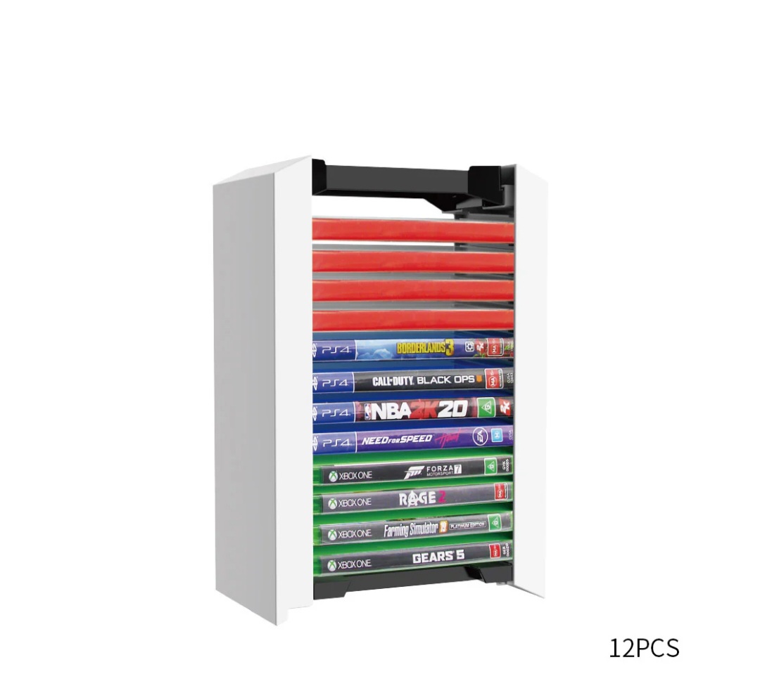 1.Material: plastic 2.Availablerange: for PS5/PS4CDs 3.Canhold1 12CDs 4.Product weight: 562 grams 5.Dimensions: 12.5x7.8x29.5cm