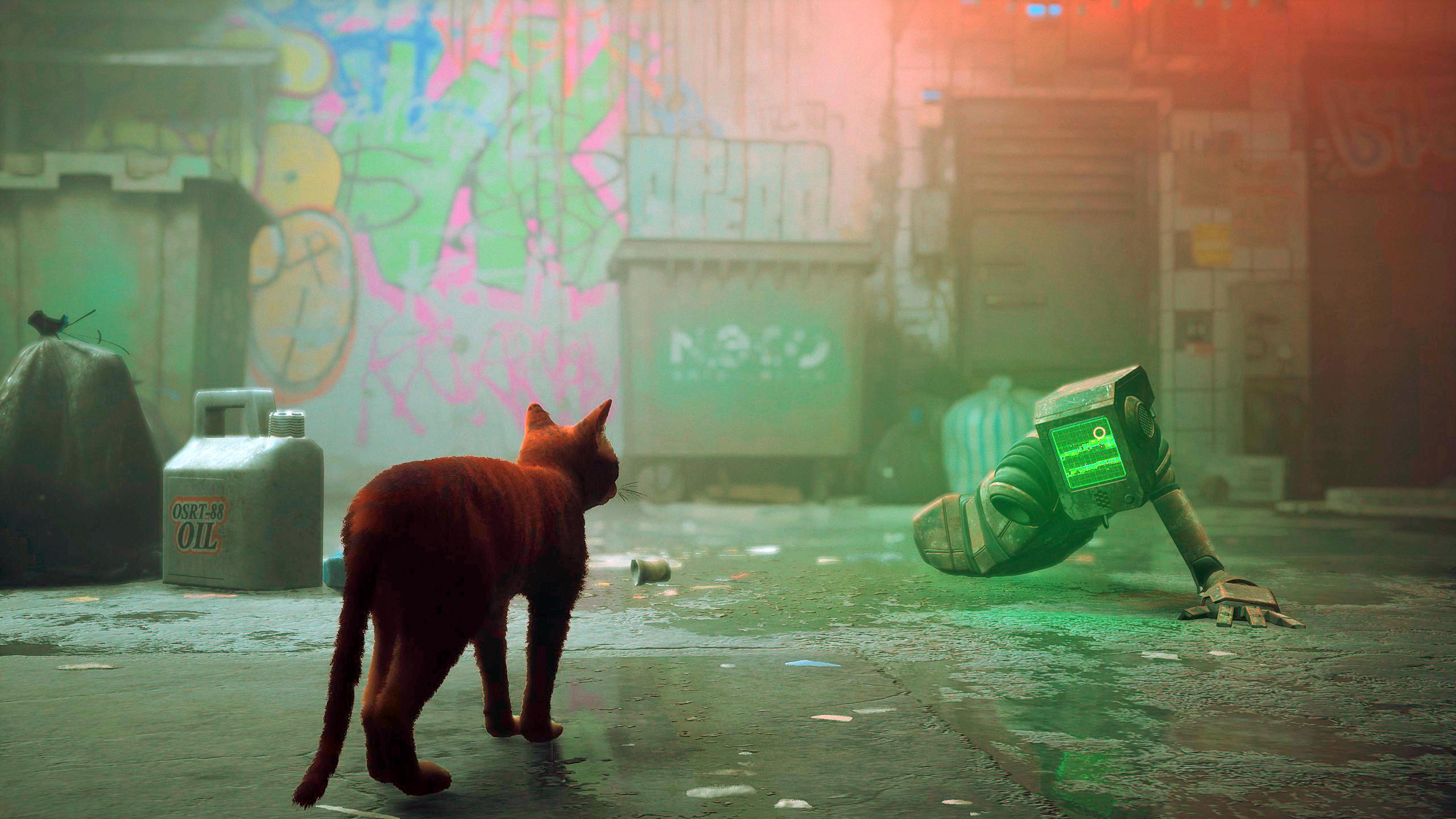 Stray is a third-person cat adventure game where you play as a stray cat navigating a decaying cyberpunk city and its underbelly. The cat, separated from its family, must solve an ancient mystery and escape with the help of a drone companion named B-12. The game emphasizes exploration, stealth, and interaction with the environment, including playful interactions with robots and dangerous creatures.