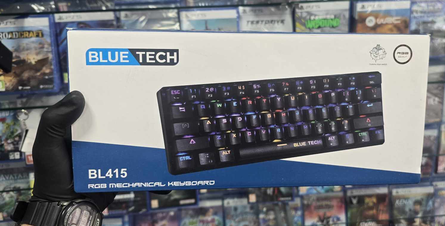 A blue switch 60% mechanical keyboard offers a compact, tenkeyless design (around 60% of a full-sized keyboard) with blue mechanical switches. These switches are known for their tactile feedback and audible "click" sound with each keystroke, making them popular for typists and gamers who enjoy the feedback.
