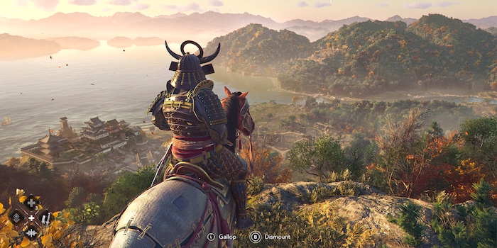 The game features a detailed open world, inspired by feudal Japan, with dynamic weather and seasonal changes that affect the environment and gameplay.
