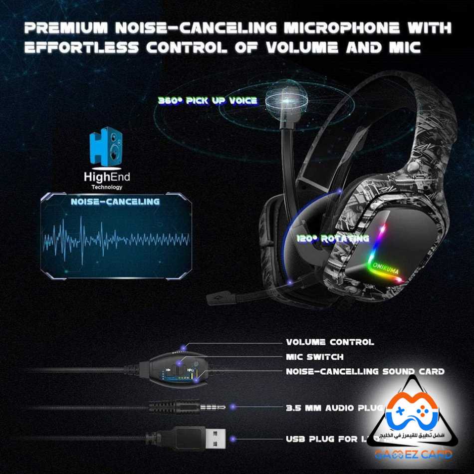 The Onikuma K20 is a wired gaming headset known for its surround sound and noise-canceling microphone, designed for use with PC, PS4, Xbox One, and mobile devices. It features 40mm drivers, a comfortable, breathable design, and RGB lighting.